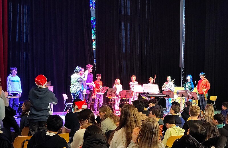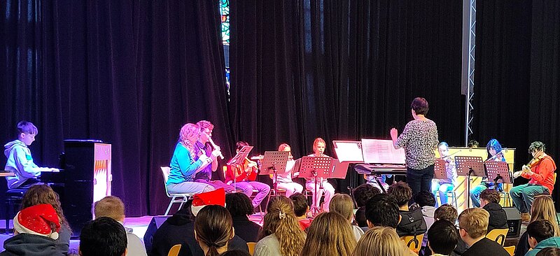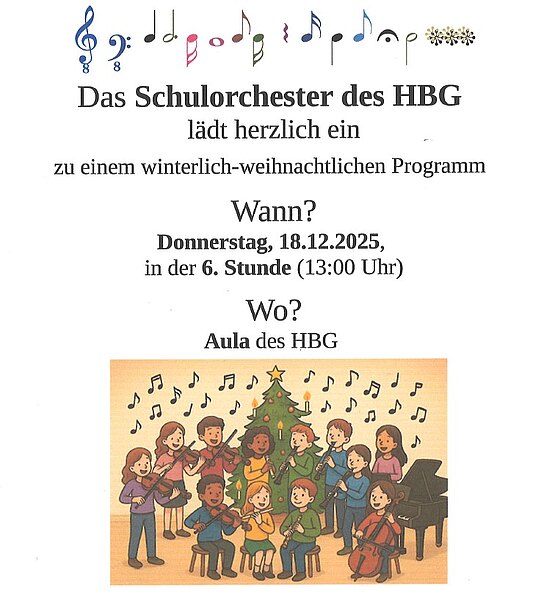Das Orchester und die Band des HBG luden am Donnerstag alle ein, bei ihrem weihnachtlichen Programm in der 6. Stunde zuzuhören. Die Aula war bis auf den letzten Platz besetzt und der Applaus groß!